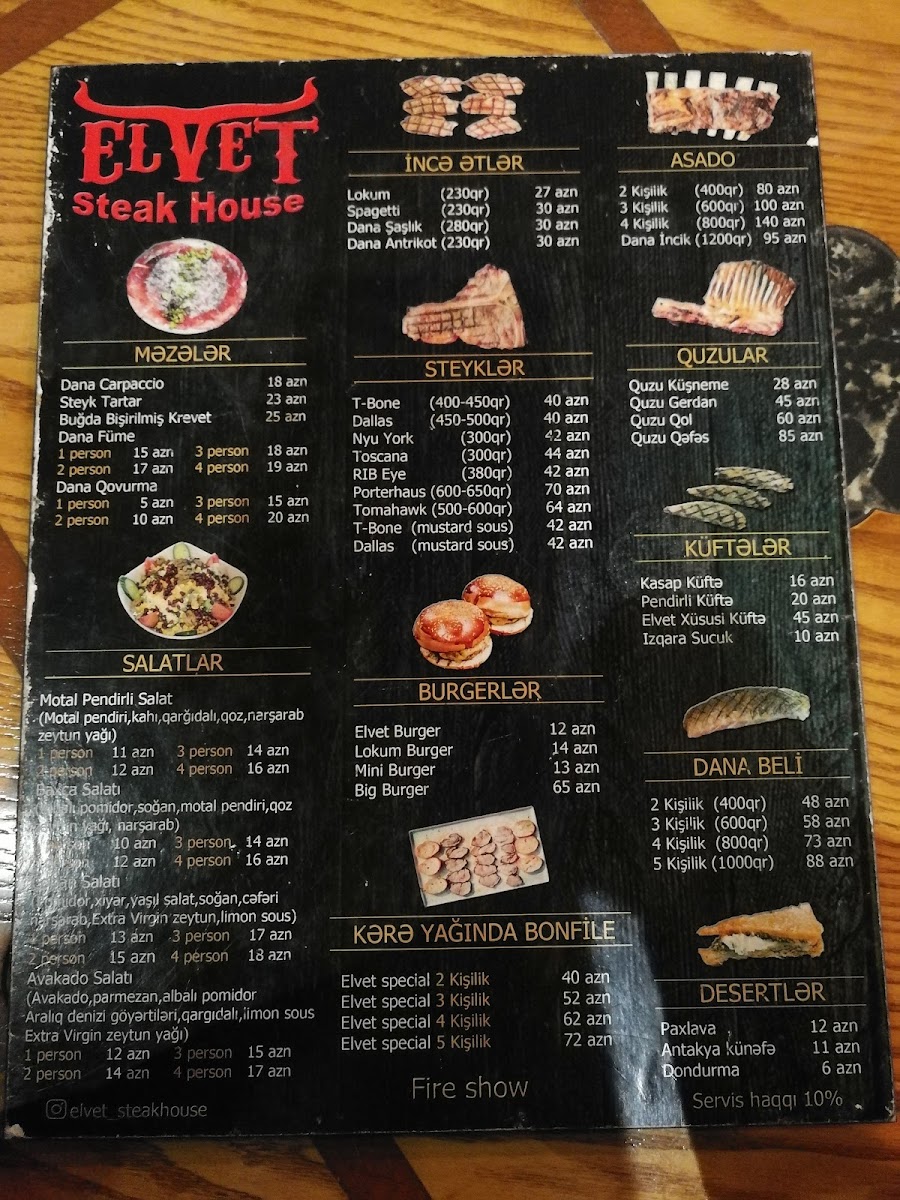 Welcome to Elvet Steakhouse, a hidden gem located in the heart of Bakı, Azerbaijan. This exquisite restaurant offers a culinary experience that’s nothing short of remarkable. Elvet is celebrated for its premium steaks, perfectly cooked to your preference, ensuring a heavenly dining experience for meat lovers.